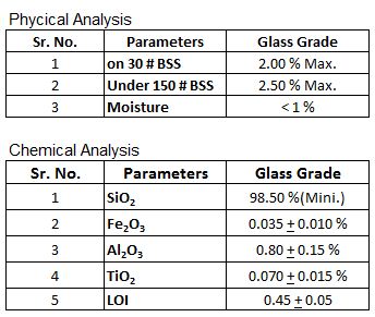 Applications: Glass Making, Foundry Casting, Ceramics, Water Filtration, Construction, Chemical, Adhesive, Refractory, Abrasive, Sandblasting, White Cement, Fiberglass etc.