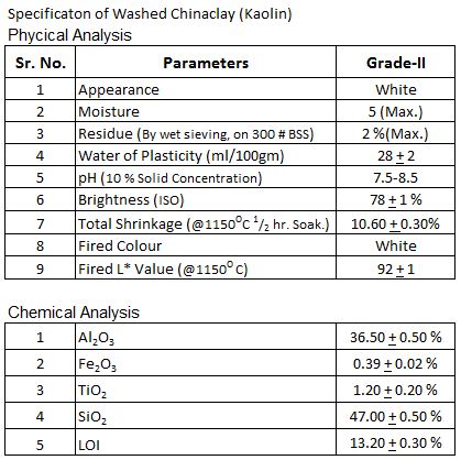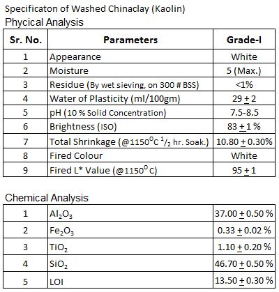 Washed or levigated China clay (Kaolin) is produce by levigation process. Raw China clay (Kaolin) is mixed with water to create milk shake like slurry. This slurry is passed through de-gritting, solid-liquid separation, Filtering & drying process & then it became water washed Chin clay (Kaolin).
